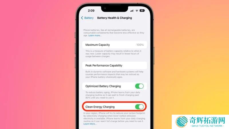 此外,Clean Energy Charging 功能对普通用户也默认开启,可通过 iOS 16.1 及以上版本的“设置”应用中“电池” → “电池健康与充电”选项进行管理,但目前仅限于美国本土使用。
