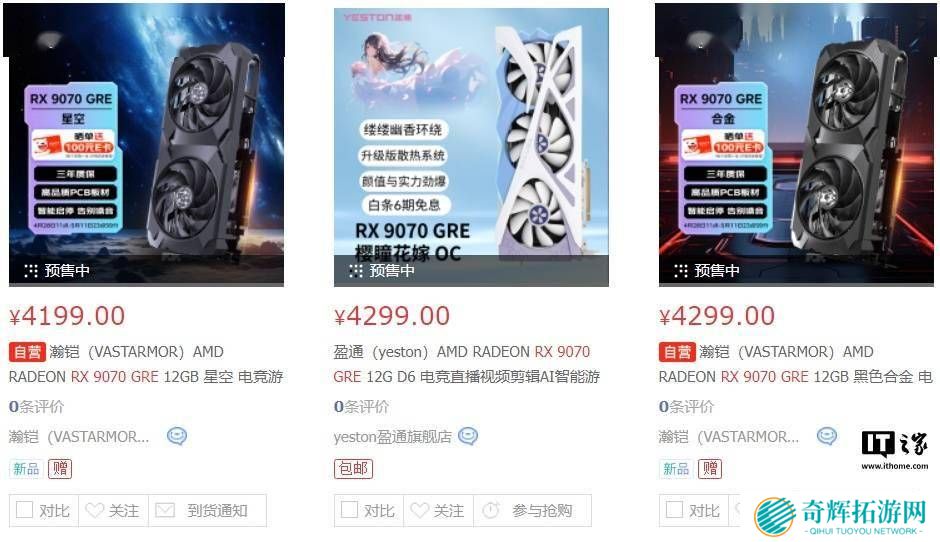 目前,京东平台上已有多款Radeon RX 9070 GRE显卡开启预售,定价从4199元起,部分产品定价更是高达4299元。对于期待这款显卡的玩家来说,这无疑是一个不容错过的机会。