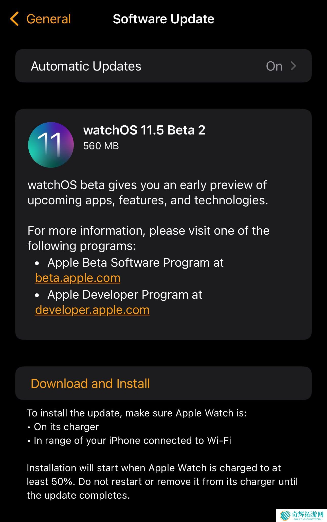 要安装 watchOS 11.5 测试版,需先将配对的 iPhone 更新至 iOS 18.5 测试版。随后在 iPhone 的 Watch 应用中,进入“通用 > 软件更新”,启用“watchOS 11 开发者测试版”选项即可下载。另外需要注意的是,watchOS 不支持降级,删除测试版配置文件将停止接收后续测试更新。
