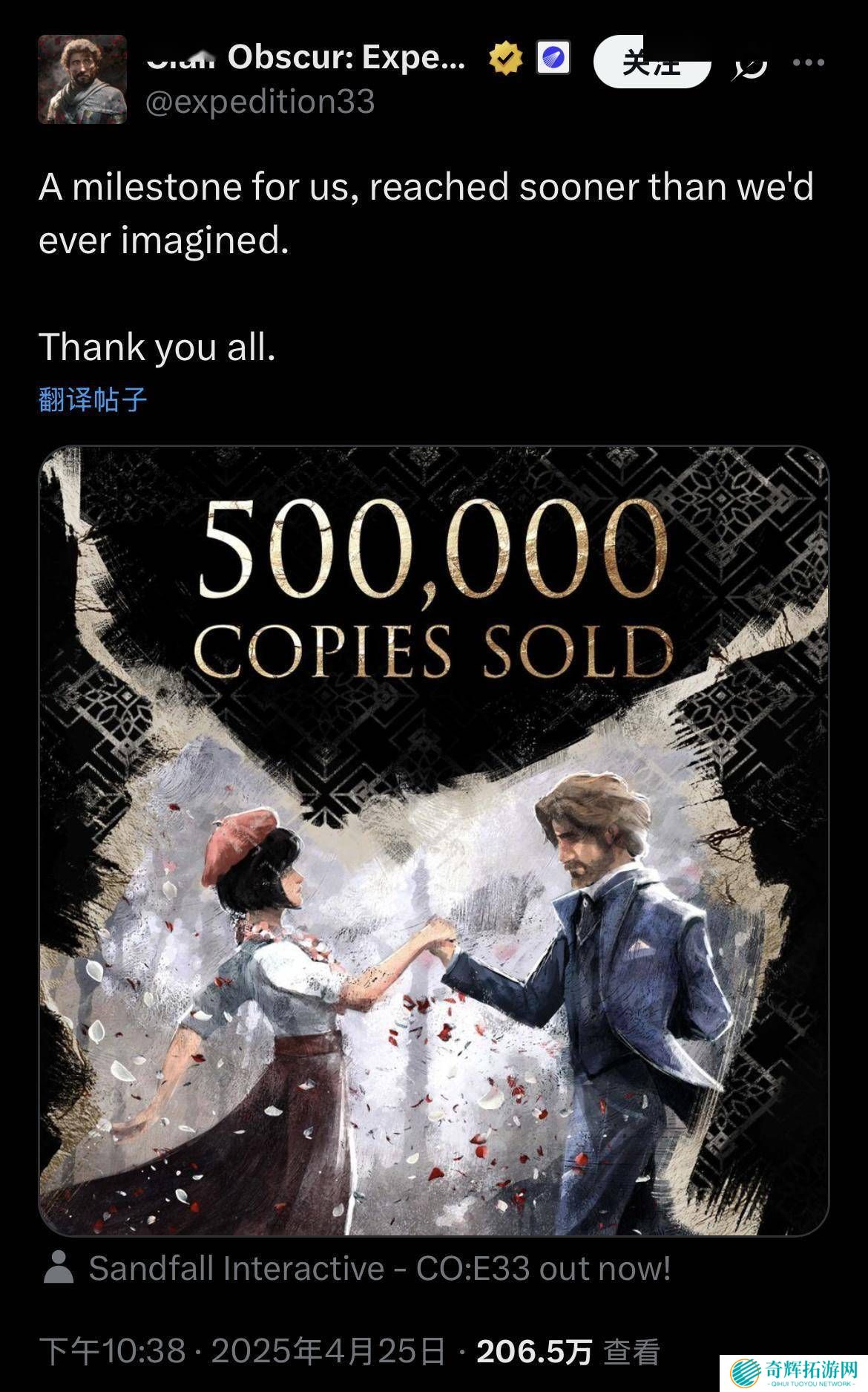 这款回合制RPG游戏于4月24日正式发售,并同步登陆了PS5、Xbox Series X|S以及PC平台。尤为在发售日当天,《光与影:33号远征队》就加入了Xbox Game Pass,进一步拓宽了玩家的接触渠道。面对如此佳绩,工作室在Xbox平台上发表了感言:“这真是一个意想不到的里程碑,比我们预期的还要早实现,衷心感谢每一位支持我们的玩家。”