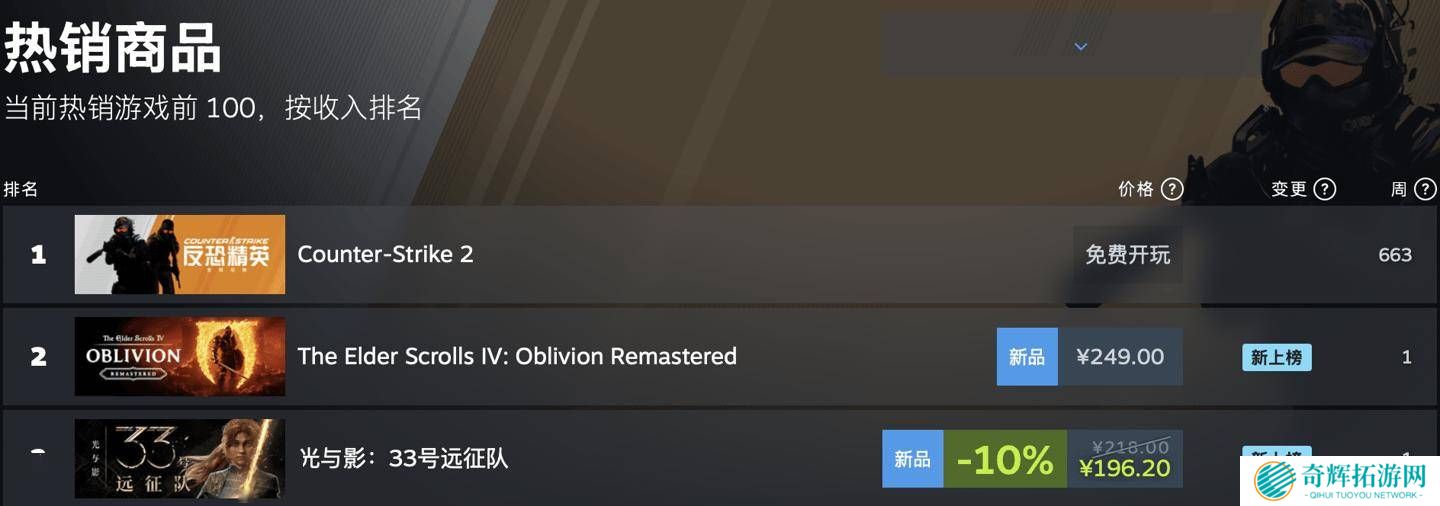 尽管《上古卷轴4:湮没重制版》的突然发售给市场带来了一定的冲击,但《光与影:33号远征队》依然凭借自身的魅力吸引了大量玩家的关注。截至发稿,该游戏在Steam中国区热销榜上位列第二,仅次于《CS2》,在全球热销榜上也占据了第三的位置,仅次于《CS2》和《上古卷轴4:湮没重制版》。同时,该游戏的峰值同时在线人数达到了98591人。