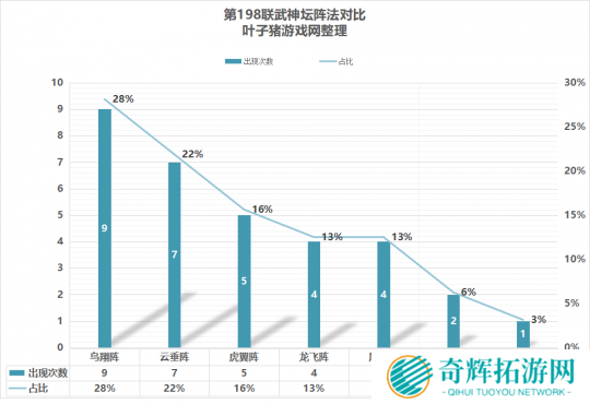 淘汰赛中出现的阵法以鸟翔阵和云垂阵为主,两者的占比分别是28%和22%。这是因为四保一或五保零是以多封、多辅为主,大家更注重整体阵容的速度或抗性,能让阵容发挥出最大的作用。