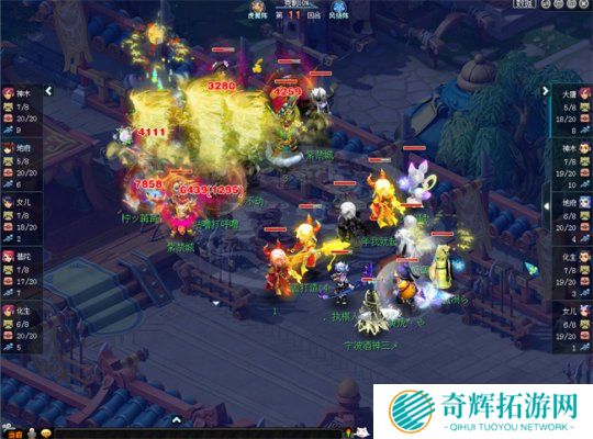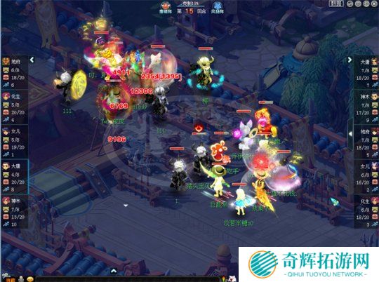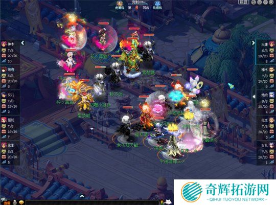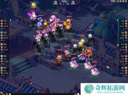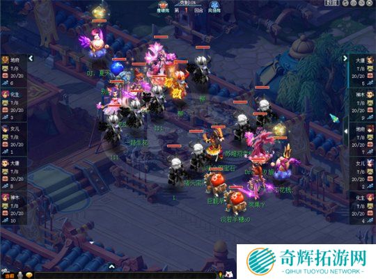 晋级赛第五轮,百花村与紫禁城这两大服务器的队伍赛场相遇。目前,紫禁城由于服务期内的武神坛人员变动,因此并没有回到过去的鼎盛状态。在本场比赛中,紫禁城开局鹰阵大克对手凤阵10%,而百花村的女儿则拿到了全场1速。比赛开始后,百花村第1回合直接小死亡命中对方神木林并将其击倒,打出了自己的攻势。在这种情况下,紫禁城也快速调整状态,第6回合小死亡命中并点掉百花村大唐,稳住了场上局势。