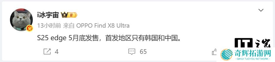 据博主 @i冰宇宙 爆料,三星 Galaxy S25 Edge 会在 5 月底发售,最初仅在韩国和中国上市。