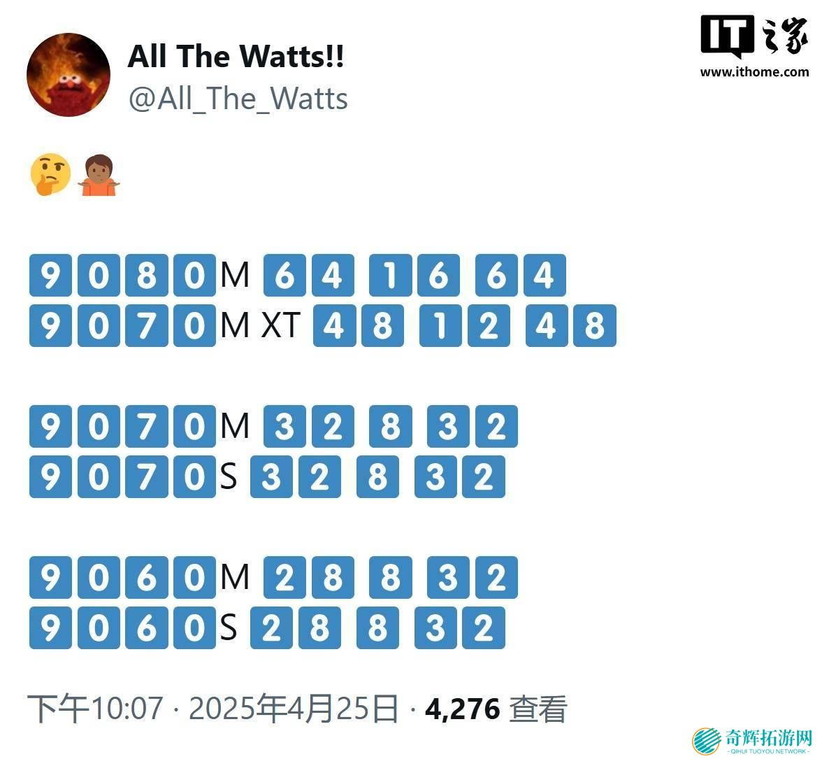 近日,知名爆料账号@All_The_Watts在X平台上发布了一条引人瞩目的消息,详细揭示了AMD即将推出的Radeon RX 9000M系列笔记本显卡的具体规格和配置。