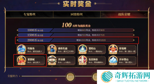 除此之外,2022武神坛全明星争霸赛加入了全新的助力机制,各位粉丝玩家可通过不同渠道助力自己喜欢的战队,积累全服助力值。当全服助力值积累到1000万、1500万和2000万时,将会解锁不同的奖金。最终,2022武神坛全明星争霸赛全服总助力值突破2069万,成功解锁了最高奖金。值得一提的是,通过助力值解锁的奖金并不属于优胜战队,而是用来回馈一直以为对梦幻西游赛事支持和热爱的粉丝玩家。
