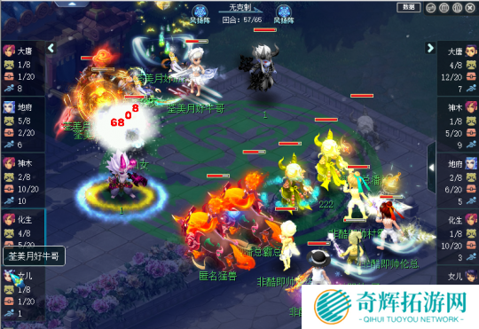 55回合,荃美月好药品几乎所剩无几,双方再次互点,非酷即帅的隐攻抢先击飞了荃美月好的谛听,成功将荃美月好神木点死,还把荃美月好大唐也击倒在地,荃美月好的地府中了发瘟匣三个回合都未能解掉。非酷即帅抓住机会,开启无间地狱,成功击杀荃美月好的化生寺,弹尽粮绝的荃美月好只能不断拉出宝宝拖延时间,59回合荃美月好用出慈航普度可惜已经是回天无力,最终65回合,荃美月好全员倒地,由非酷即帅成功拿下晋级决赛。