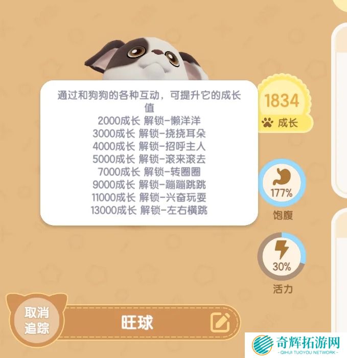 解锁宠物沙包玩具后,狗狗可以进行“寻回训练”,训练成功会提高它的成长值。