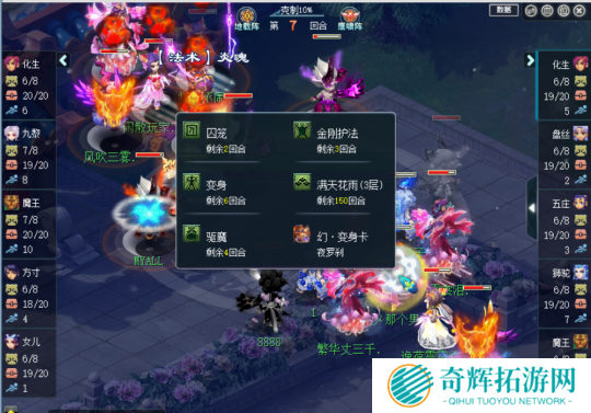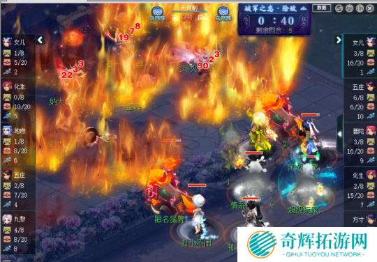 西栅老街化生完全处于梦游状态,想要活血回伤但是目标总被曲阜孔庙九黎抢先1回合击杀,完全无法提供恢复,第九回合,西栅老街用出逆境解除小死亡,但是也没有解决根本问题,很快九黎魔王又被曲阜孔庙高速九黎击杀。
