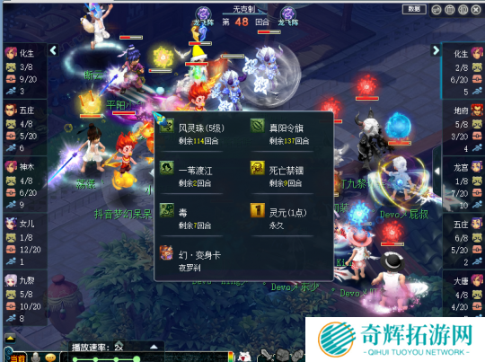 47回合,牡丹亭打中西栅老街九黎城一记大死亡并将其击倒,随后连续点杀西栅老街女儿,虽然没有成功,但是也借此机会将全队血量回满,