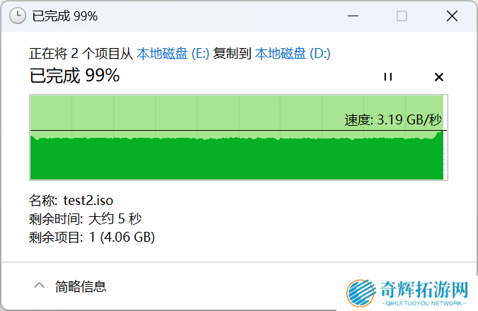 在实际文件拷贝测试中,将544GB的Steam文件夹复制到致态TiPro9000 4TB SSD中,用时约3分钟,写入速度大部分时间保持在3GB/s左右,未出现速度骤降的情况。在连续写入测试中,即使一次性写入1.46TB的文件,速度也能稳定在3GB/s左右,直至写入完成。