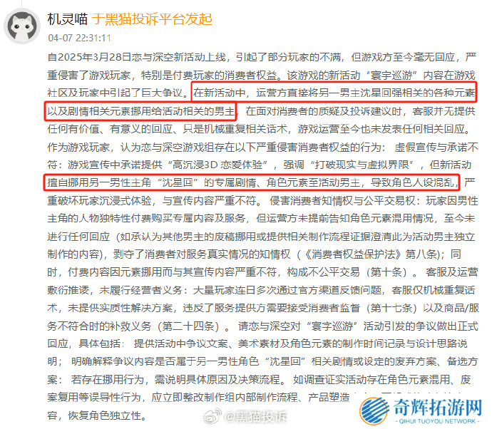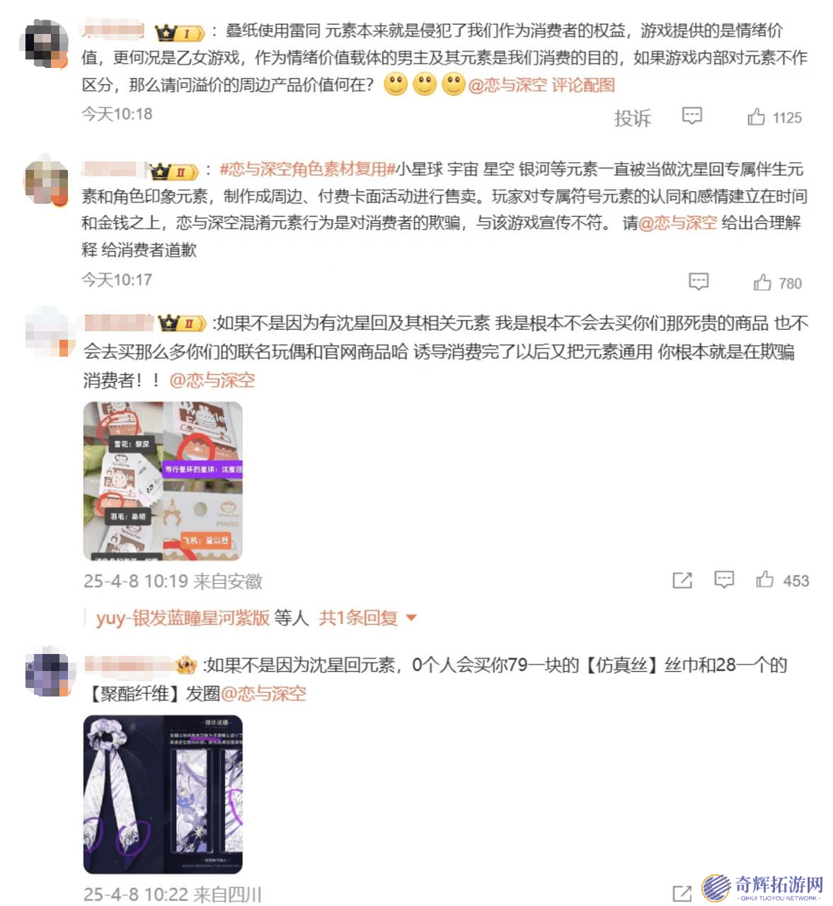 在相关话题下,多名玩家表示《恋与深空》混淆角色元素的行为是对消费者的欺骗,他们纷纷表示要采取维权行动。这一事件在玩家群体中引发了强烈的反响,也引起了社会的广泛关注。