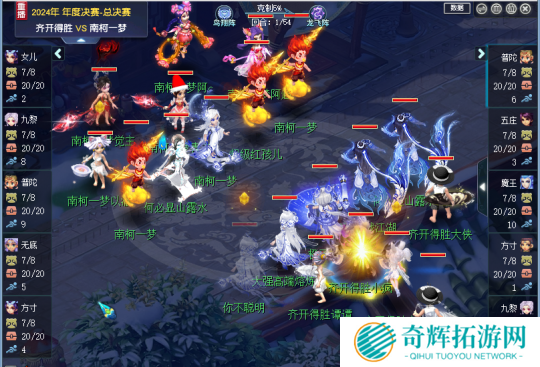 47回合,多人倒地的南柯一梦用出慈航普度,但是当回合咒师就被齐开得胜魔王秘传秒出1W2伤害击杀,齐开得胜火力全开,最终54回合成功清场,拿下2024群雄年度决赛天科组冠军。
