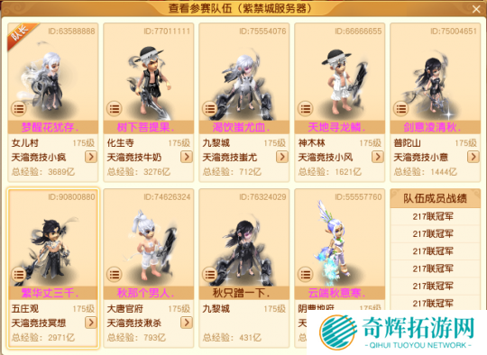 由于曲阜孔庙N哥在本联武神坛之前鉴定了出九黎神器,所以其输出能力有了明显的提升。从报名图来看,曲阜孔庙同紫禁城一样,携带了“大唐、神木、双九黎”等四个输出门派。