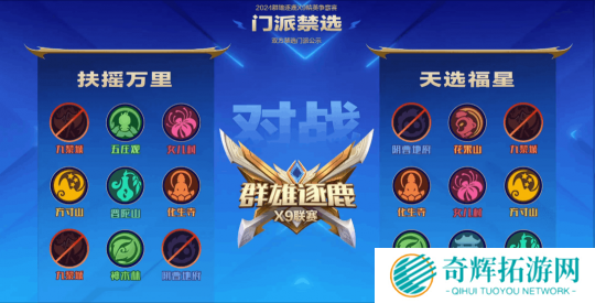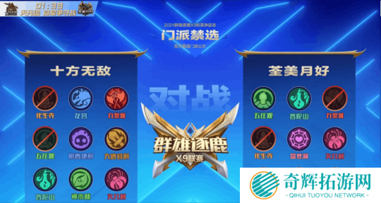禁选阶段,双方均禁用了对方的九黎城和阴曹地府。在精锐组中,九黎城的强势表现得淋漓尽致,而阴曹地府作为唯一能够限制九黎城的门派,也备受热捧。