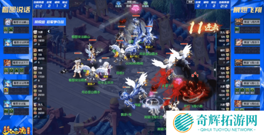 观战方【展翅飞翔】:女儿村、天宫、普陀山、九黎城、九黎城,采用 “212” 阵容。