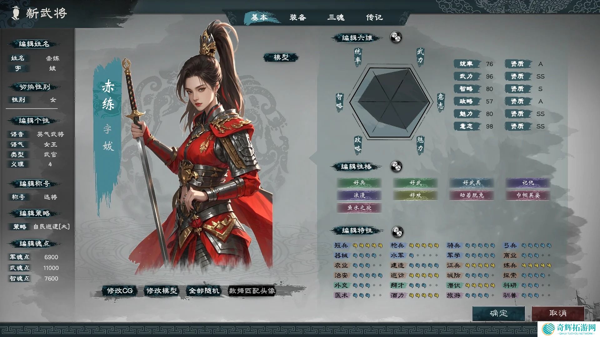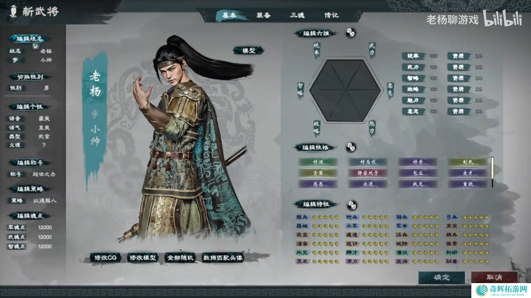 进入游戏后,点击“自建武将”模块,开始创建属于自己的武将。你可以自定义以下内容: