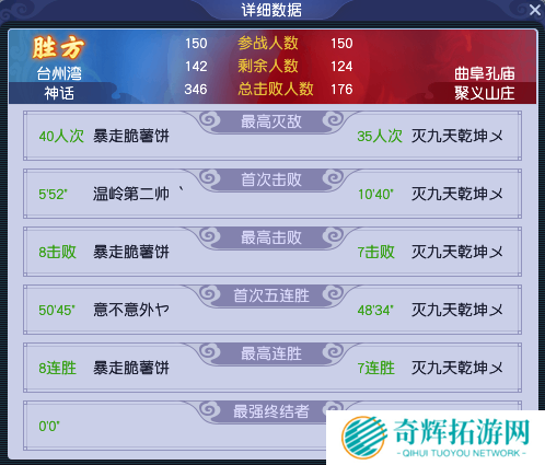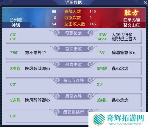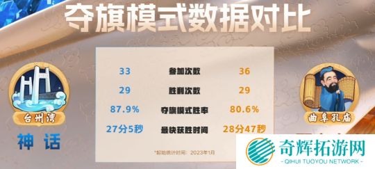 从双方夺旗模式数据来看,【神话】帮派的胜率为87.9%,比【聚义山庄】高出7.2%。