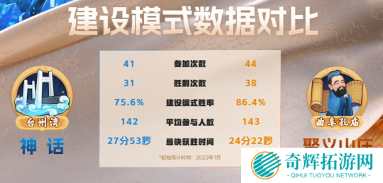 从双方建设模式数据对比来看,【神话】帮派的胜率为75.6%,比【聚义山庄】低10.8,但双方平均人数差距不大。