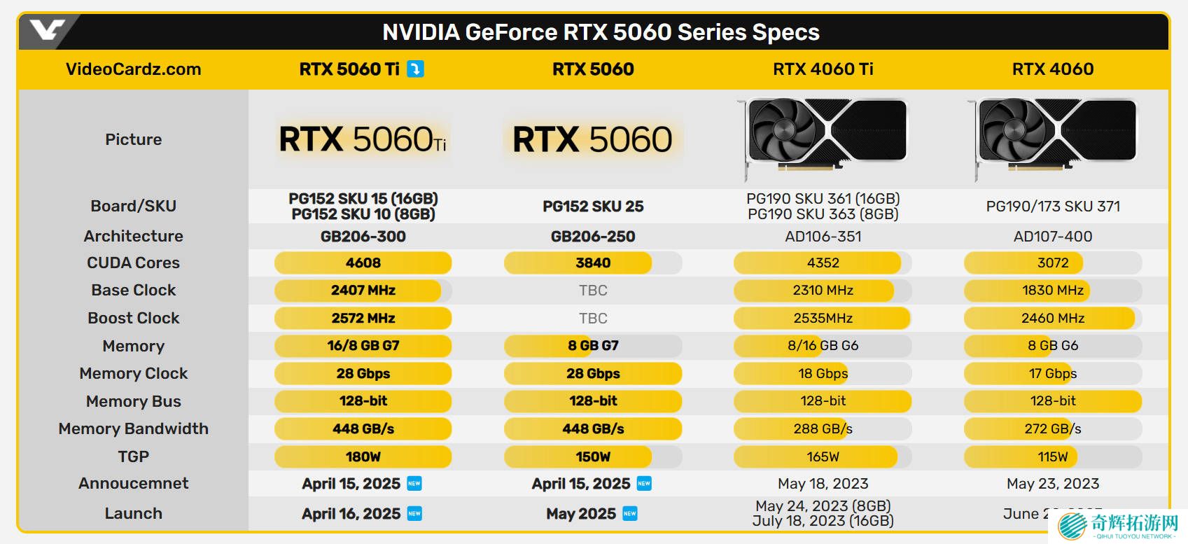 为了更直观地了解RTX 5060系列显卡的性能提升,我们不妨将其与上一代RTX 4060系列进行对比。从已曝光的规格来看,RTX 5060系列在多个关键指标上均有所升级,这无疑将为用户带来更为流畅和细腻的游戏体验以及高效的图形处理能力。