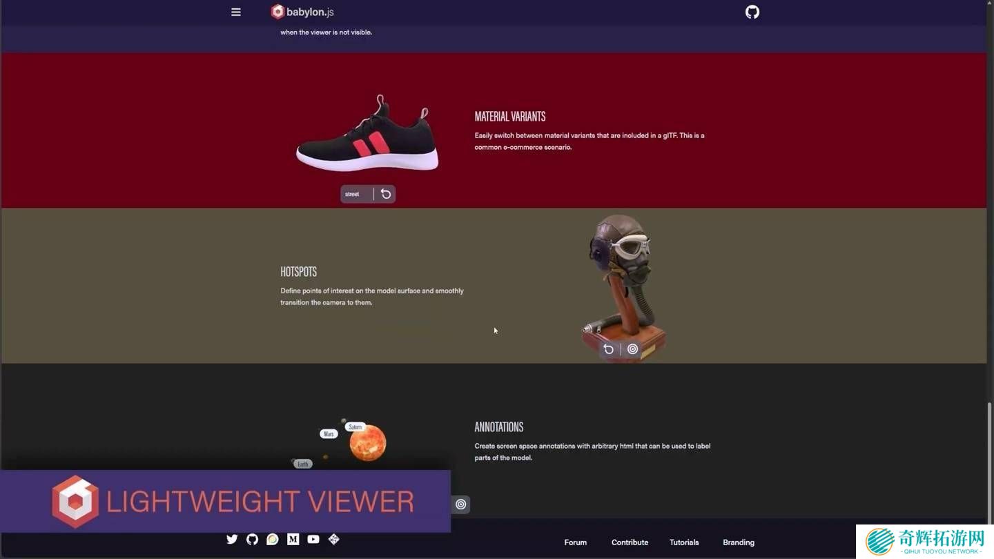 在性能和兼容性方面,Babylon.js 8.0也进行了全面优化。新版的轻量级查看器体积更小,支持动态加载依赖项,能够轻松适配任意网页。同时,查看器配置工具也得到了改进,通过简单的HTML属性设置,即可快速匹配网站风格,大大简化了开发流程。