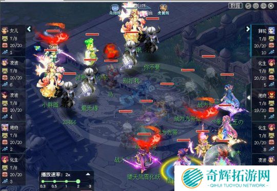 熊猫战队眼看陷入劣势,连忙拉出多只阳护宝宝解除大死亡,利用双辅助的超强回复将血量回满,虽然魔王被击倒,但是女儿可以相思寒针,稳定输出。
