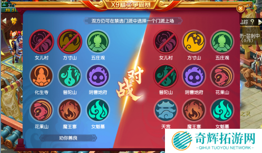 对战方(鸿运当头战队)阵容:天宫、方寸、普陀、花果、女魃 虎阵双封