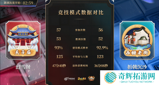 仅从双方竞技模式的数据来看,【幻雪阁】的胜率比【折戟沉沙】高 0.1%。不过,【折戟沉沙】作为拿过联赛冠军的帮派,加上服战队伍的助力,整体实力不容小觑。