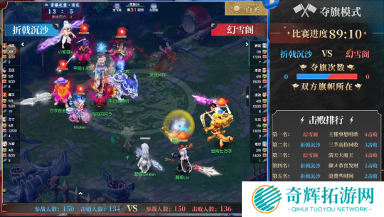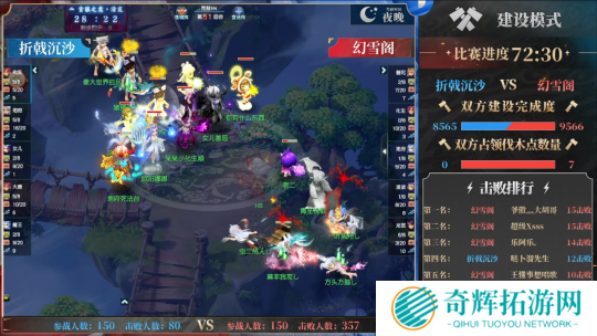 比赛进入中后期,处于防守方的【折戟沉沙】凭借 “挑队伍” 的优势,逐渐拉开总击败人数差距。但对于【幻雪阁】而言,20 个击败人数的差距并非不可逾越,只要三攻队伍发挥出色,很快就能追上。