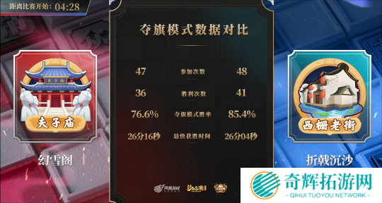 从比赛实际情况来看,【折戟沉沙】和【幻雪阁】均采取防守策略,双方虽都冲到了对手高地,但由于无法击败对方的夺旗队伍,只能通过扩大击败人数来获取优势。