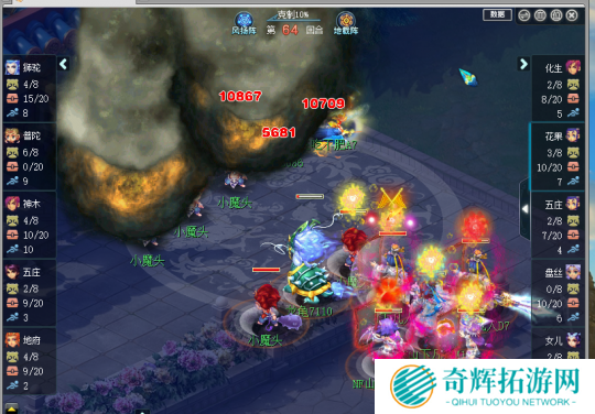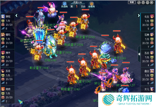 狂吃不肥出师不利,好在19回合成功点杀山下凡人的花果,争取了回复的机会,但是地府却被封印灵宝无法延长,力普陀药品也被盘丝禁药禁空,于是准备从长计议,优先清理山下凡人的宝宝。