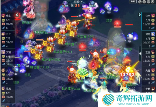 36回合,我说实话花果山如同天神下凡,一记当头打出1W3伤害秒杀天选福星五庄,随后37、38回合指哪打哪,连斩天选福星大唐、地府,天选福星瞬间三人倒地,万分危急!