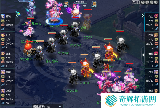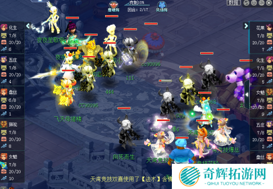 观战方天湾竞技阵容:五庄、盘丝、化生、花果、女魃 风阵