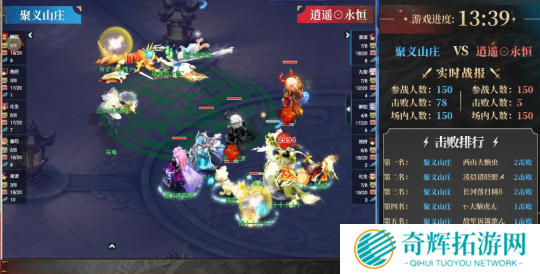 从周六竞技环节的比赛来看,【聚义山庄】依然延续了昨日的进攻能力,在比赛初期就拿到了击败人数的领先。【逍遥⊙永恒】虽然奋力抵抗,但依然无法遏制【聚义山庄】的击杀速度。