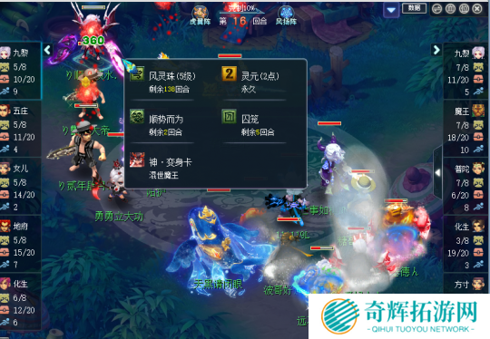 开场南阳府就给九黎加上天地同寿,但是夫子庙却利用九黎速度优势接连守尸,双方互换操作等待灵元,南阳府咒师将紧箍咒挂上夫子庙人物头顶,这对依靠化生寺回复的夫子庙有着极强的牵制作用。
