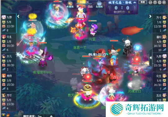 12回合,南阳府发起点杀失魂击倒夫子庙九黎,可惜因为是紧箍咒补刀并未打上囚笼,15回合,南阳府轻松囚笼点杀了夫子庙化生,打乱了夫子庙进攻节奏。夫子庙只能拉出一只谛听吸收火力,借机将化生伤势回复起来,双方只能继续清宠寻找机会。