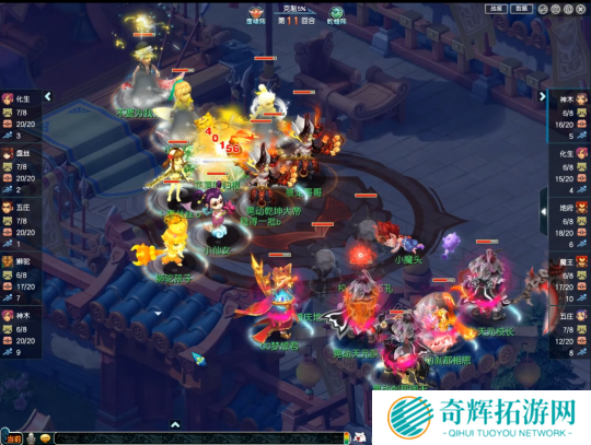 第二回合,观战方继续延续点杀策略,一波带走了对战方盘丝。这个时候的对战方不仅阵亡两员大将,就连化生寺的“仁心”层数也很低,很难抗住观战方接连不断的进攻节奏。