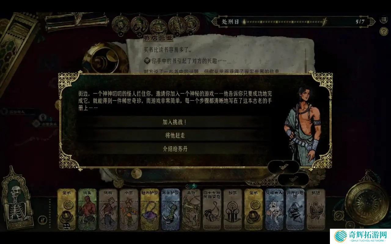 大力投资:获得事件“投注资金”限时七个回合,完成事件需要七个回合。事件要求20金币,考察派遣人物的生存和社交属性。结束后判定五点及以上时收益最多,获得四十金币和一个附加品(书或者装备)