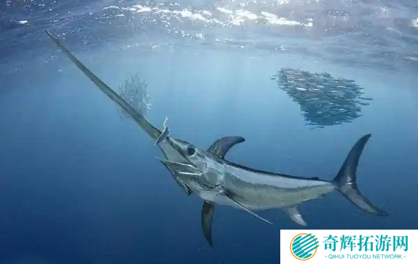 6、剑鱼不会用整条身体去撞击猎物,而是利用“剑”部分快速挥动,将猎物击晕或直接刺穿,再轻松吞食。