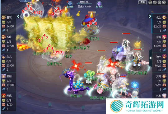 天启组决赛由无尽火域对战及时行乐,今天给大家带来的是双方第一场战斗解析,无尽火域选择了化生寺+普陀的双辅助阵容,非常针对及时行乐的的咒师普陀,并且无尽火域的龙飞阵极限大克了及时行乐的雷绝阵,双输出伤害非常高。