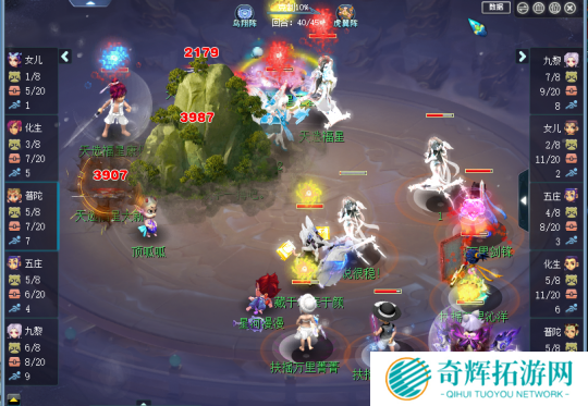 11回合,天选福星九黎城刚刚站起,再次被打中大死亡倒地,扶摇万里九黎城则故意不解除头顶的紧箍咒,每回合用宝宝和孩子拉起,天选福星不仅无法使用大死亡攻击,同时也无法封印,只能眼睁睁看着扶摇万里火力全开。