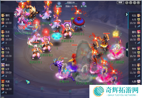 及时行乐无底洞加上明光宝烛,用金蝉保护宝宝,可惜无尽火域双输出依靠阵法大克不断清理及时行乐的宝宝。