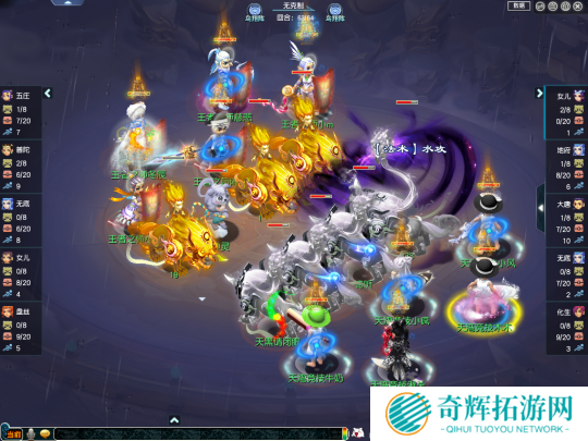 就开场情况来看,虽然【天湾竞技】拿到了全场一速,但【王者之师】的速度卡得非常好,可以靠着女儿、盘丝、五庄的控制能力干扰【天湾竞技】的点杀打法。