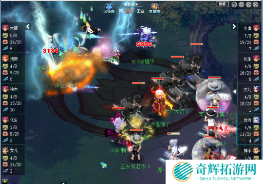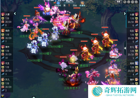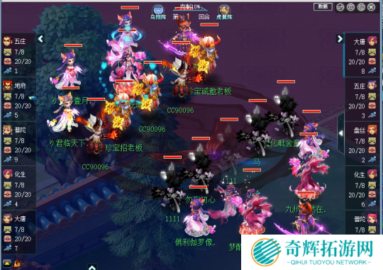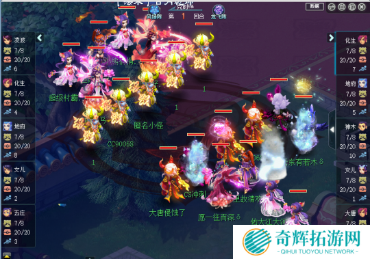 开场紫禁城就对珍宝阁人物单位发起横扫,察觉到伤害不足后紫禁城大唐叠出一层满天,随后一次禁疗横扫点杀了珍宝阁五庄和大唐,13回合紫禁城更是当前回合大死亡击倒珍宝阁五庄,让珍宝阁完全处于被动状态物法反攻。