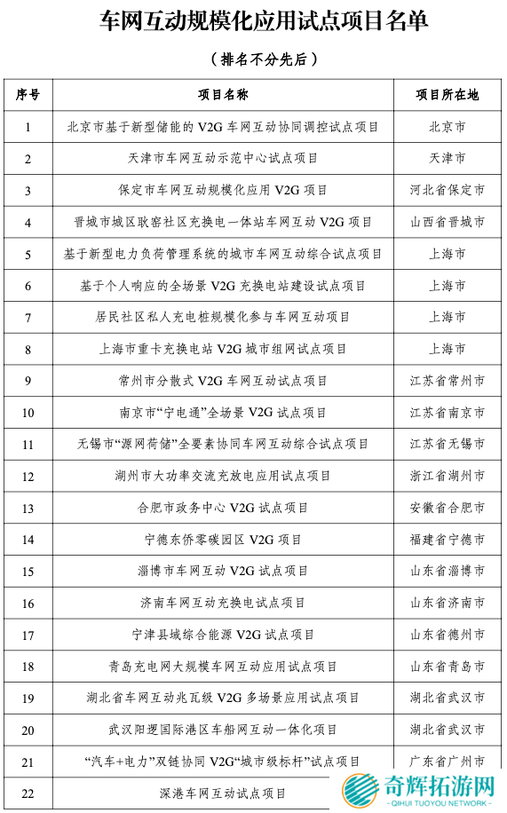 车网互动规模化应用试点城市包含上海市、江苏省常州市、安徽省合肥市、安徽省淮北市、广东省广州市、广东省深圳市、海南省海口市、重庆市、云南省昆明市。