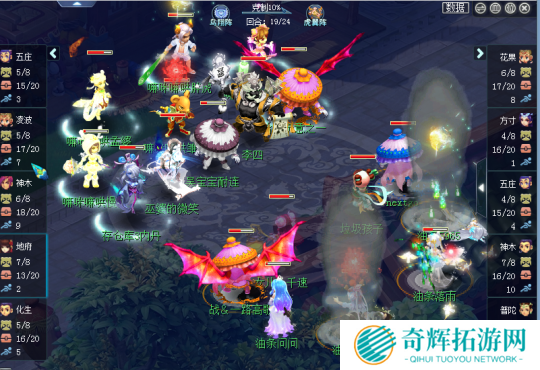 对战方嘛咪嘛哄 阵容:五庄、地府、化生、凌波、神木 鸟阵国标