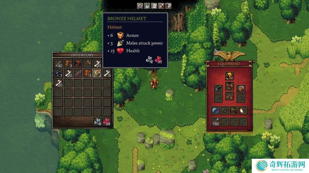 为角色装备海量护甲、武器与饰品。收集食物和消耗品获取增益效果。提升各项技能并通过获得诸神的眷顾解锁天赋!