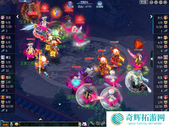 十方无敌也不是吃素的,银河和阿七依然选用自己较为拿手的“太极”阵容,利用“大唐、神木”搭配“女儿、地府、化生”的“国标点杀”体系迎战王者之师。