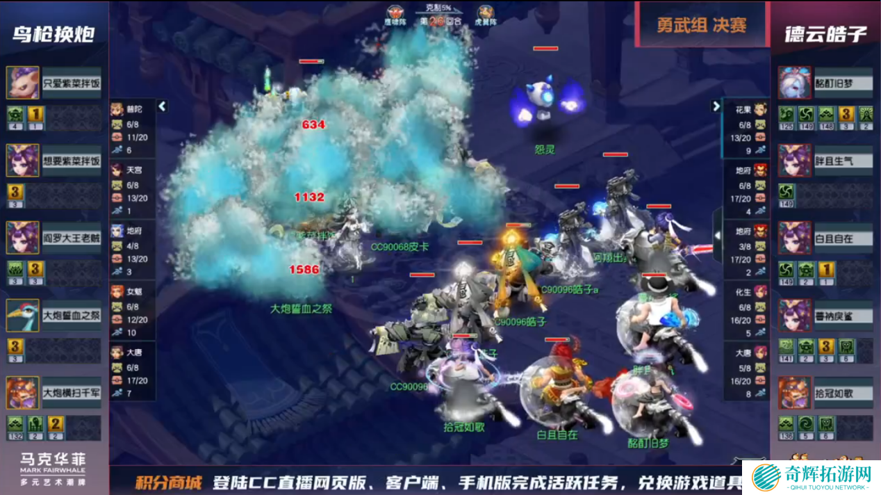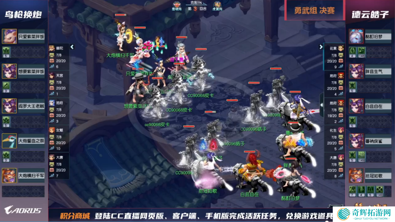 勇武组的决赛在德云皓子和鸟枪换炮之间展开,双方也是赛场上的老对手了。德云皓子在本场比赛中采用了花果、双地府、化生、大唐的双地府点杀阵容,鸟枪换炮则是选用了普陀、天宫、地府、女魃、大唐的标准国标阵容。