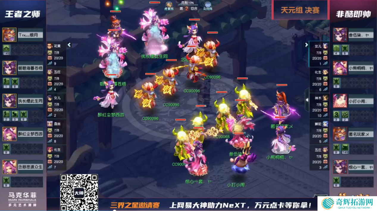 虽然非酷即帅拥有阵法大克优势,但毕竟开的是鸟阵,输出加成没有那么高,所以很难击穿王者之师防线。反而是王者之师通过不断变化的节奏能力,屡屡通过花果山的飞秒确立优势。
